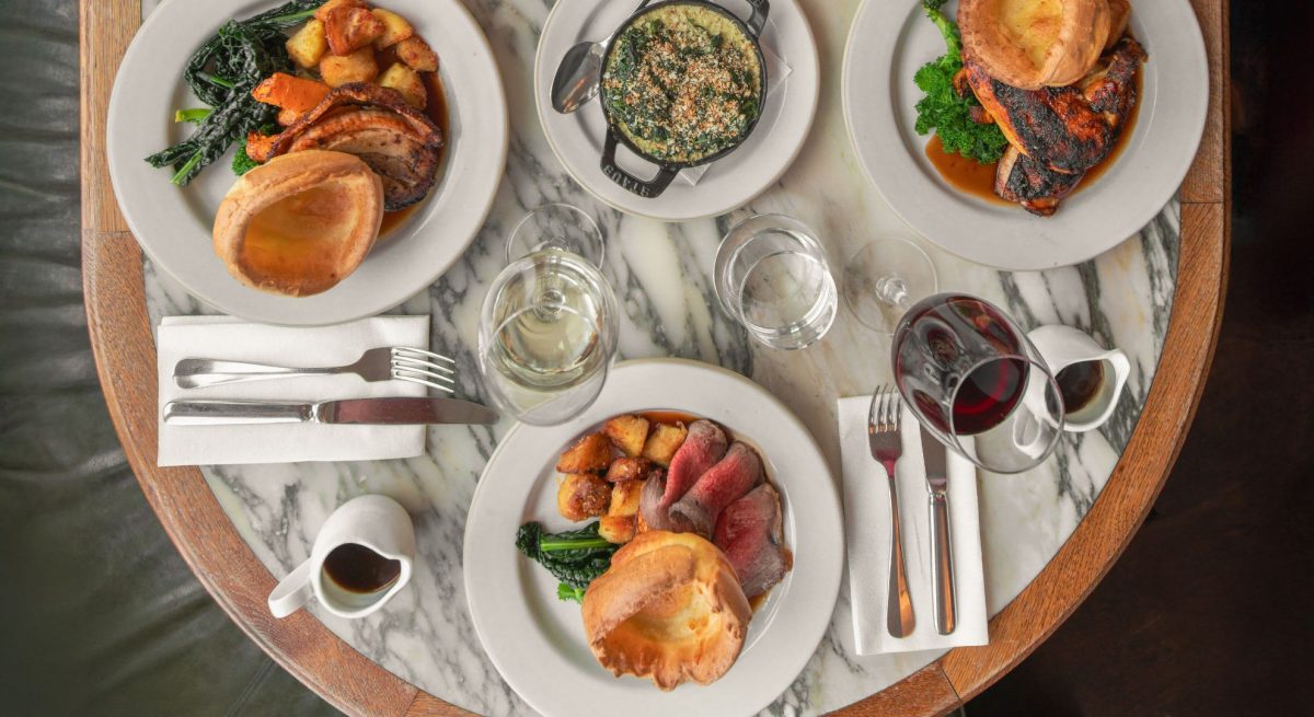 For secondi, choose from our signature roasts, including sirloin of beef, honey-glazed chicken, slow-roasted leg of lamb, beetroot, mushroom and walnut Wellington, or pan-roasted lemon sole.